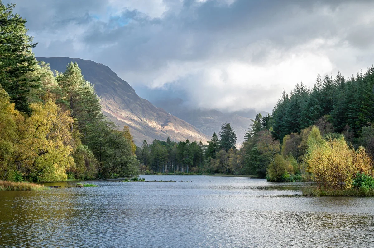 Glencoe Lochan is another spot you shouldn’t miss. This tranquil lake, encircled by a quiet forest, allows you to capture stunning mirror-like reflections of the surrounding trees on its calm waters.